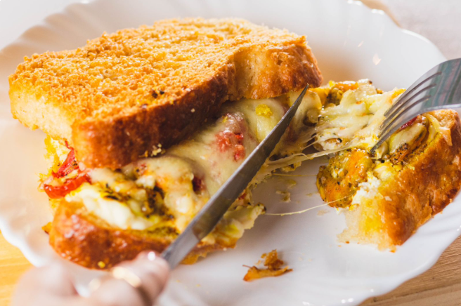 Sanduiche gratinado de camarão
